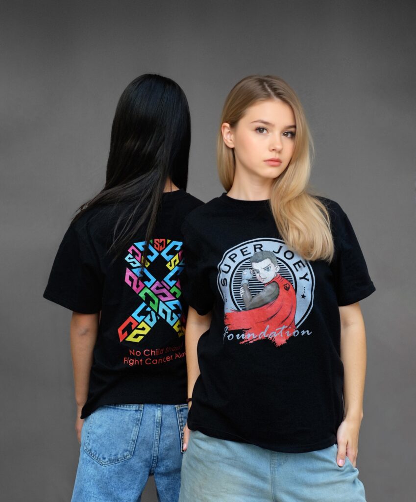 The Super Joey Foundation’s “No Child Should Fight Cancer Alone” t-shirt, launched for Childhood Cancer Awareness Month, features a striking design. The yellow ribbon on the back, a symbol of hope, is ingeniously crafted from the “SJ” initials of Super Joey, seamlessly blending with the Foundation’s logo for a unique brand identity. Paired with the bold front graphic of Super Joey, it conveys resilience and unity. Made with high-quality materials, this t-shirt has garnered widespread praise since its release, resonating with communities and supporters.